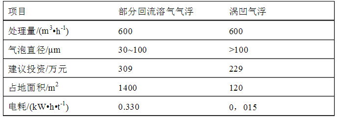 揚子石化含硫改建擴建工程竣工后,原污水場能力明顯不足,且原污水場界區(qū)內(nèi)已無擴容場地,改造設(shè)施應(yīng)小型化。改造方案在部分回流溶氣氣浮和渦凹氣浮中選擇,下表是2種方案的比較: