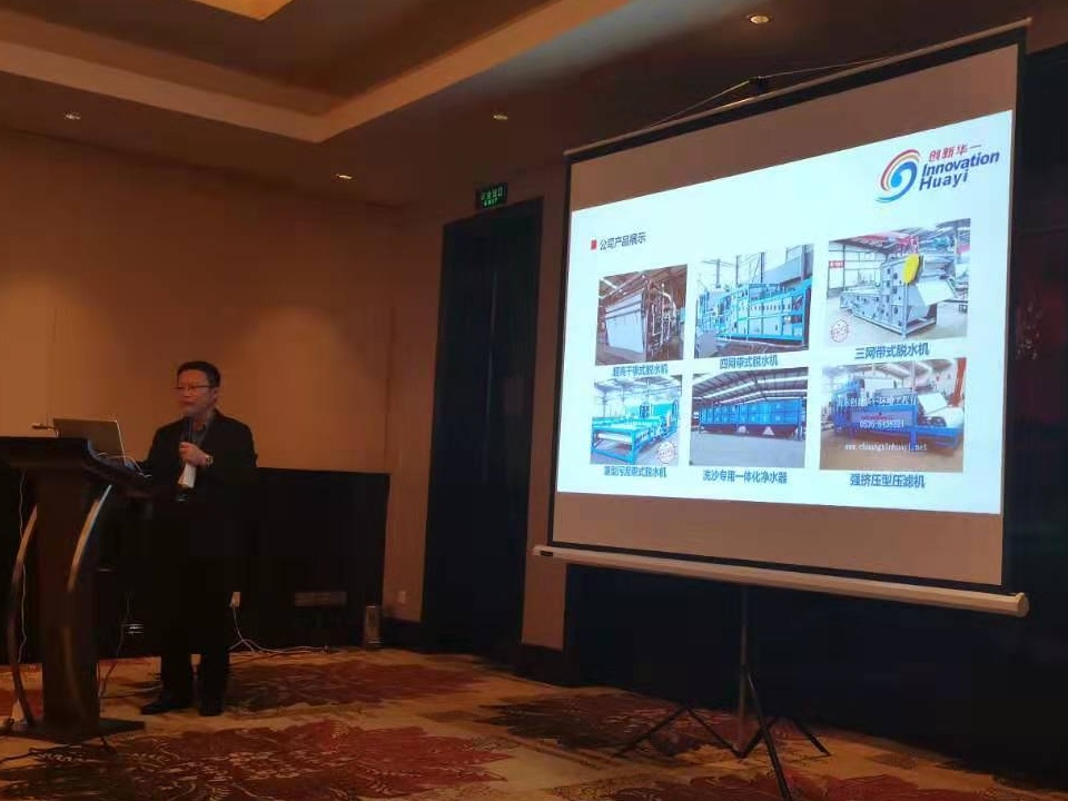 山東創(chuàng)新華一環(huán)境工程有限公司總經(jīng)理徐汝鋒作題為《新一代洗砂泥漿處理專用超高干帶式壓濾機介紹》的主題報告。在國家加大力度狠抓嚴抓環(huán)保的前提下,機制砂行業(yè)洗砂泥漿處理和泥漿再利用制磚含水率過高的問題成為困擾行業(yè)發(fā)展的難題,然而目前市場上普通的脫水設(shè)備處理干度低,運行成本高等問題已不能適應(yīng)市場的要求,為此報告與大家交流分享2019年針對洗砂泥漿研發(fā)的超干脫水機和運行工藝。