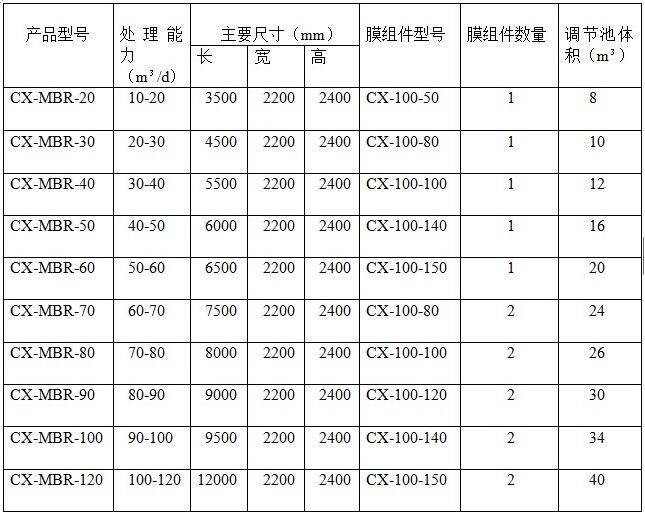 四、MBR膜一體化設(shè)備主要參數(shù):