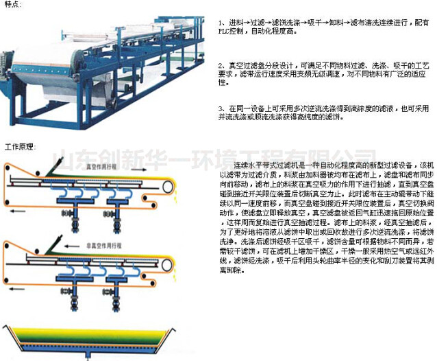 真空帶式過濾機廣泛應用于冶金、礦山、化工、造紙、制藥、食品、電廠濕法煙氣脫硫、煤化工及環保等行業。(我公司還生產帶式壓濾機,板框壓濾機等,具體設備的選擇我們將根據不同的物料確定。)